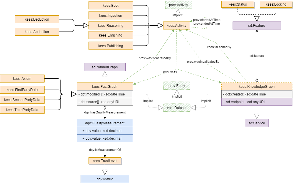 The KEES ontology is available under the Creative Commons Attribution 4.0 Unported license; see http://creativecommons.org/licenses/by/4.0/. In a nutshell, you are free to copy, distribute and transmit the work; to remix/adapt the work (e.g. to import the ontology and create specializations of its elements), as long as you attribute the work in the manner specified by the author or licensor (but not in any way that suggests that they endorse you or your use of the work). Proper Attribution: Simply include the statement "This work is based on the KEES ontology, developed by Enrico Fagnoni" and link back to http:/linkeddata.center/kees/v1